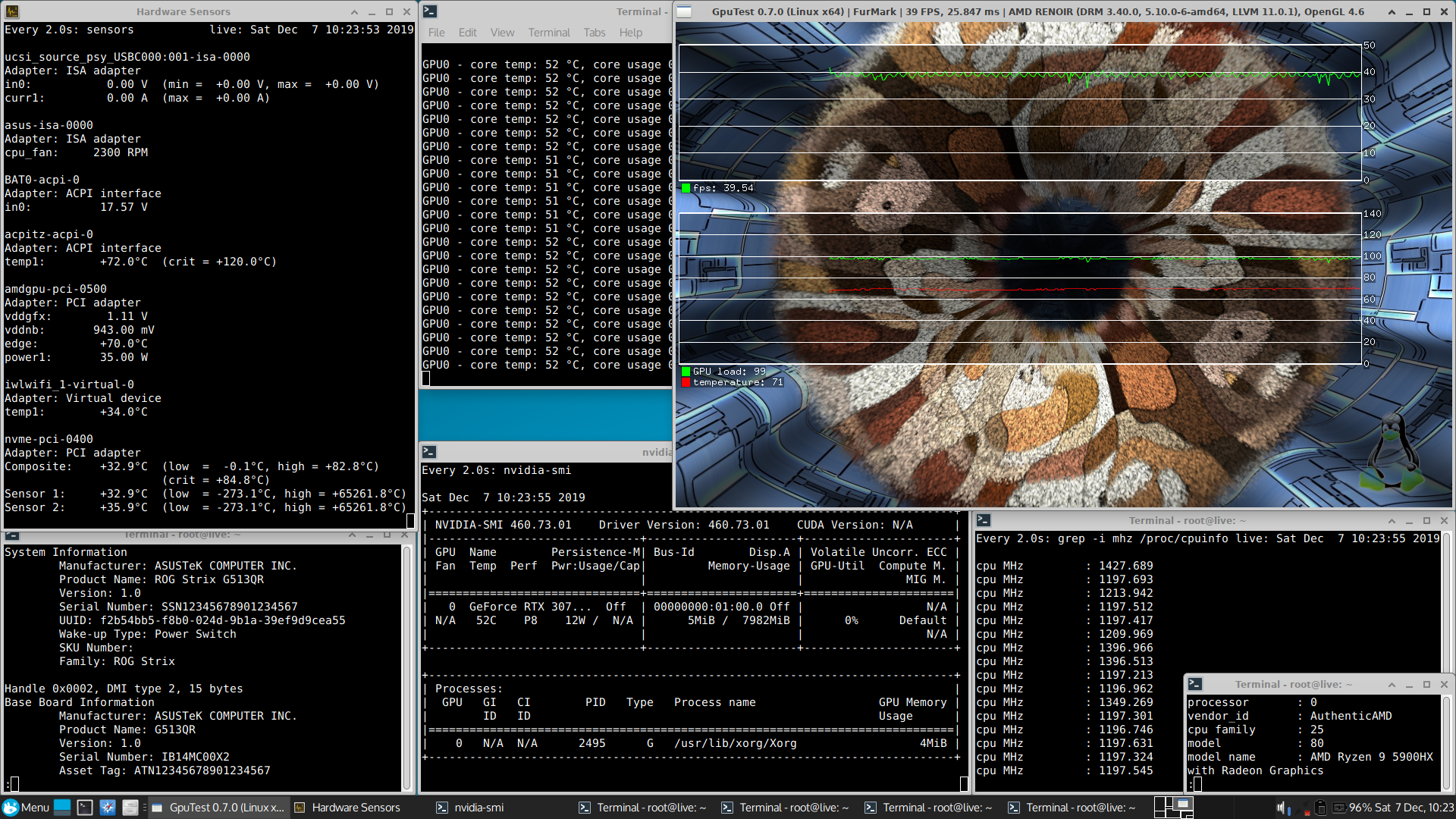 | FurMark одновременно на GTX 1660 Ti и i7-10750H iGPU |